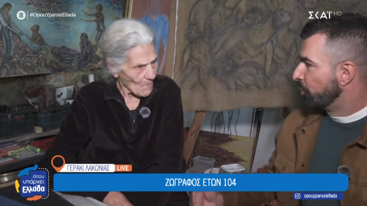 Η κάμερα του «Όπου υπάρχει Ελλάδα», στον ΣΚΑΪ, ταξιδεύει στο Γεράκι Λακωνίας και συναντά την Αλεξάνδρα Αντωνά, που στα 104 χρόνια, συνεχίζει να δίνει ζωή μέσα από η ζωγραφική της σε μνήμες και ιστορίες.