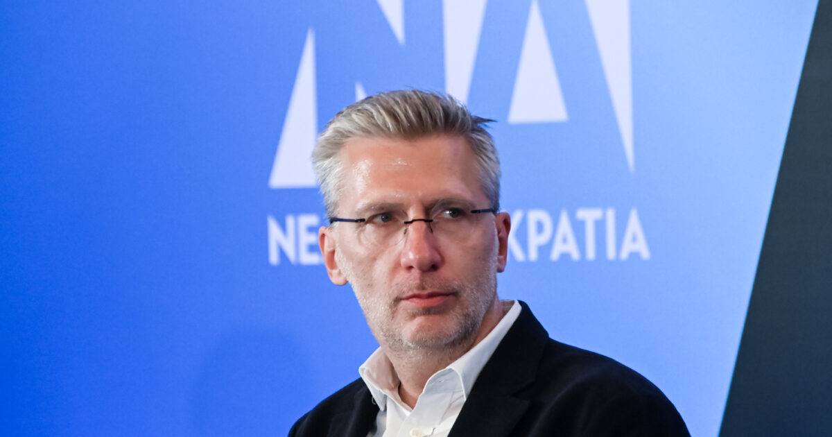 Ο υπουργός Επικρατείας Άκης Σκέρτσος στο 5ο προσυνέδριο της Νέας Δημοκρατίας (Πηγή φωτογραφίας: ΒΑΣΙΛΗΣ ΠΑΠΑΔΟΠΟΥΛΟΣ / EUROKINISSI)