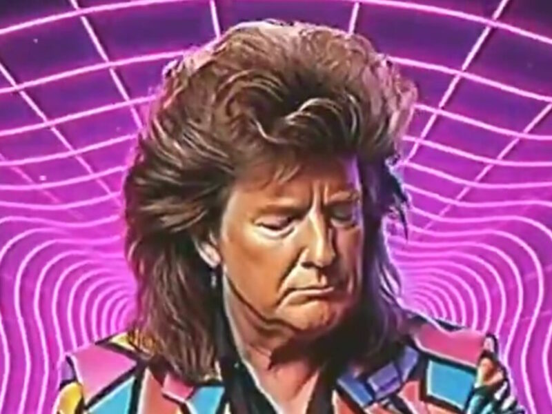 Στο βίντεο ο Ντόναλντ Τραμπ εμφανίζεται με στυλ της δεκαετίας του ’80 έχοντας βέβαια και την κόμη εκείνης της εποχής.