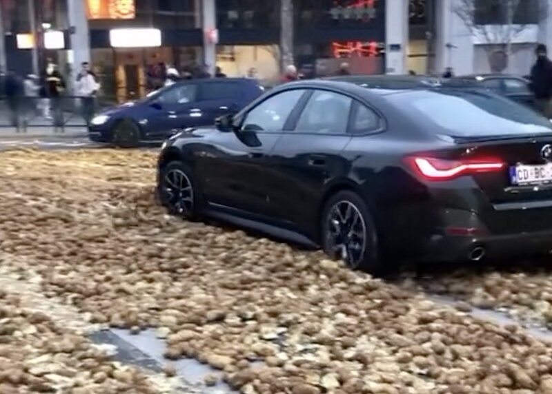 Το να κινείται κάποιος με μια μεγάλη μπερλίνα αντί για ένα SUV με τετρακίνηση κρύβει καμιά φορά απρόσμενους περιορισμούς. Απόδειξη, ο ιδιοκτήτης της BMW 4 Series Gran Coupé που βρέθηκε σε δύσκολη θέση μέσα σε μια θάλασσα από πατάτες που είχαν ρίξει αγρότες κατά τη διάρκεια των διαδηλώσεων στη βελγική πρωτεύουσα.