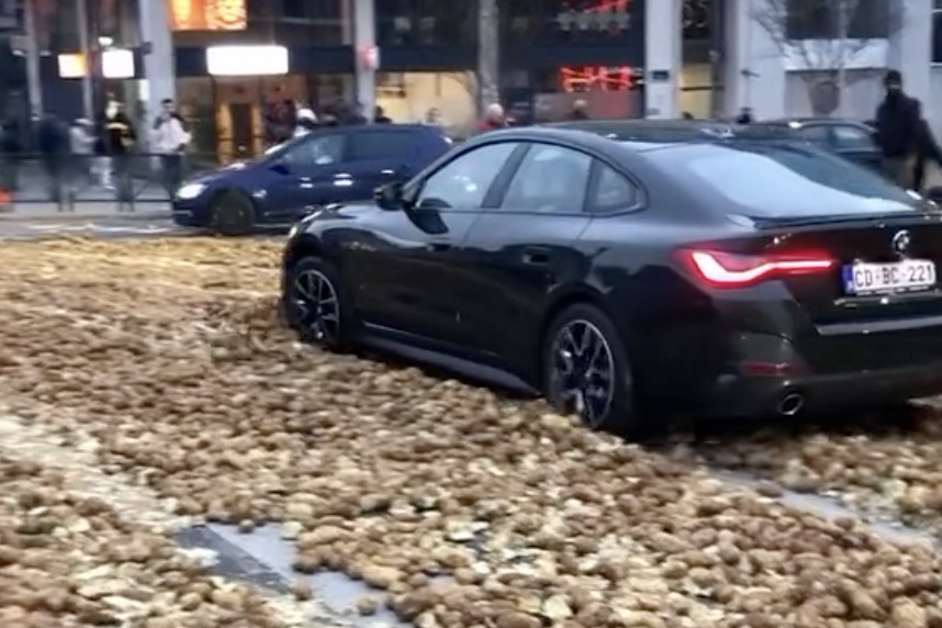 Το να κινείται κάποιος με μια μεγάλη μπερλίνα αντί για ένα SUV με τετρακίνηση κρύβει καμιά φορά απρόσμενους περιορισμούς. Απόδειξη, ο ιδιοκτήτης της BMW 4 Series Gran Coupé που βρέθηκε σε δύσκολη θέση μέσα σε μια θάλασσα από πατάτες που είχαν ρίξει αγρότες κατά τη διάρκεια των διαδηλώσεων στη βελγική πρωτεύουσα.