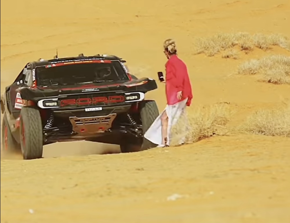 Ωστόσο, μακριά από τη μάχη της κορυφής, ένα περιστατικό βγαλμένο από… ταινία τρόμου συνέβη σε πρόσφατη ειδική διαδρομή. Την ώρα που το Ford Raptor T1+ του Romain Dumas, με συνοδηγό τον Alex Winocq, πλησίαζε σημείο με θεατές, μια νεαρή γυναίκα αποφάσισε ξαφνικά να διασχίσει την πίστα, κρατώντας το κινητό της κάθετα για να τραβήξει βίντεο – κυριολεκτικά εμπρός από το αγωνιστικό!