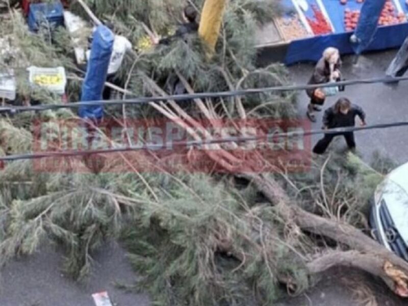 Από καθαρή τύχη δεν υπήρξαν τραυματισμοί την Δευτέρα (16/02/2026) σε λαϊκή αγορά στον Πειραιά καθώς ένα μεγάλο δέντρο έπεσε στο δρόμο.