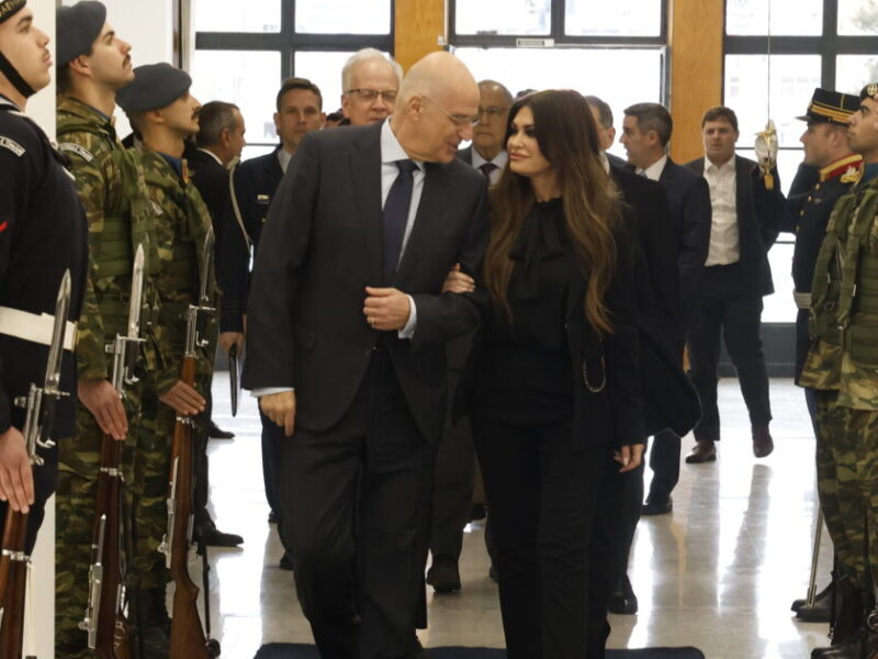 Ο υπουργός Εθνικής Άμυνας, Νίκος Δένδιας, και η πρέσβης των ΗΠΑ στην Ελλάδα, Κίμπερλι Γκιλφόιλ (Πηγή φωτογραφίας: ΓΙΩΡΓΟΣ ΚΟΝΤΑΡΙΝΗΣ / EUROKINISSI)