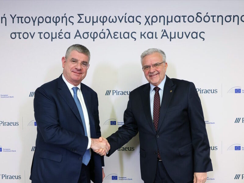Νέα χρηματοδοτική συμφωνία ύψους 100 εκατ. ευρώ υπέγραψε η Ευρωπαϊκή Τράπεζα Επενδύσεων (ΕΤΕπ) με την Τράπεζα Πειραιώς, εγκαινιάζοντας μια συναλλαγή – ορόσημο, καθώς πρόκειται για την πρώτη συμφωνία της ΕΤΕπ στην Ελλάδα που στοχεύει αποκλειστικά στη στήριξη επιχειρήσεων του τομέα της ασφάλειας και της άμυνας.