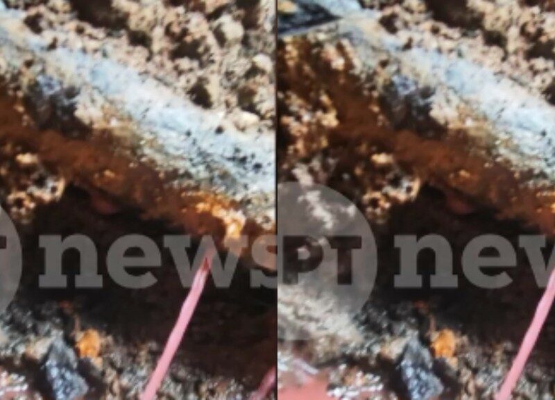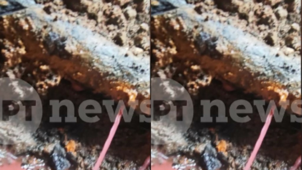 Στο φωτογραφικό ντοκουμέντο φαίνονται οι σκουριασμένες σωληνώσεις και γύρω τους υλικό με φουξ χρώμα.