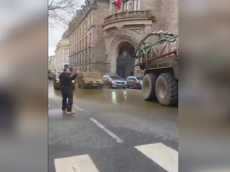 Στη Λιμόζ, μπροστά από την νομαρχία, αγρότες πέταξαν κοπριά προς τις αστυνομικές δυνάμεις, σε μία ακόμη ένδειξη της οργής που επικρατεί στον αγροτικό κόσμο.