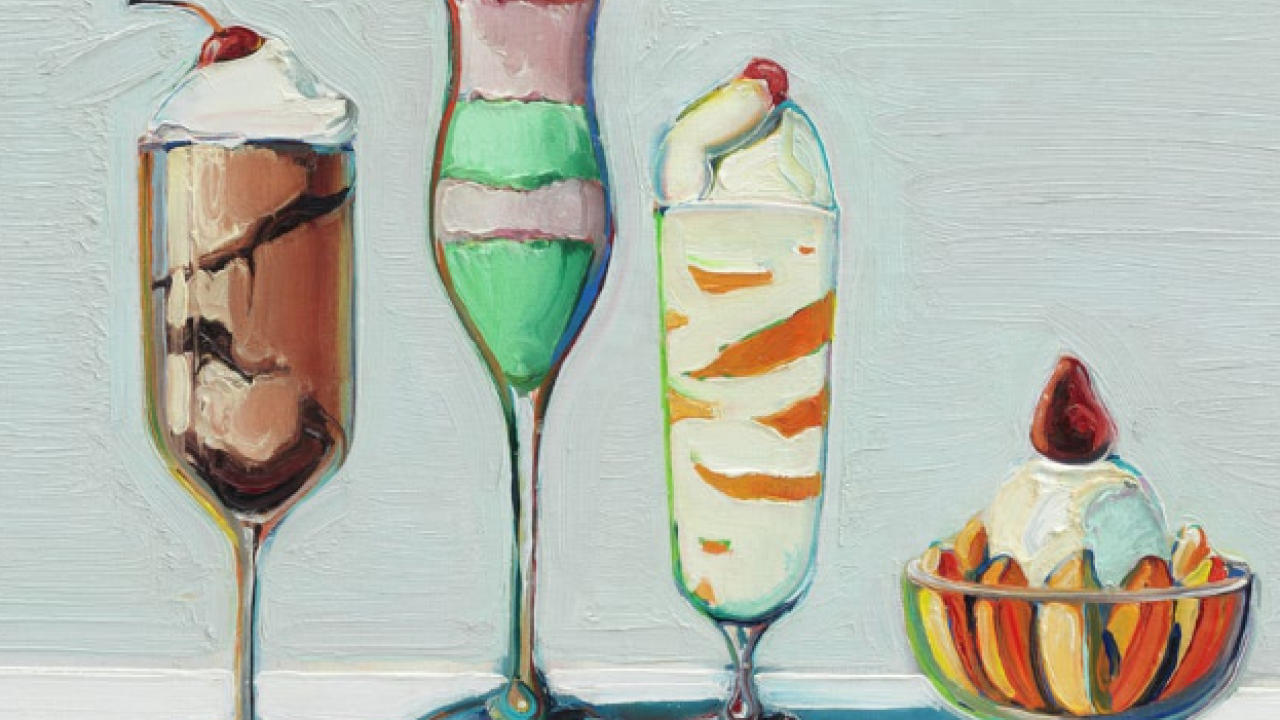 Ο Αμερικανός καλλιτέχνης Γουέιν Τιμπό (Wayne Thiebaud), ο οποίος έφυγε από τη ζωή το 2021, αντλούσε έμπνευση από τα αντικείμενα και της εικόνες της καθημερινότητας που τον περιέβαλλαν. Από τις βιτρίνες των φούρνων μέχρι τις γωνιές των δρόμων, τον προσέλκυαν οι λαχταριστές τούρτες με το πλούσιο γλάσο και τα γυαλιστερά χοτ ντογκ, ενώ τα σχήματα των μηχανημάτων για τσίχλες και η απλότητα ενός καφέ τον ιντρίγκαραν εξίσου.