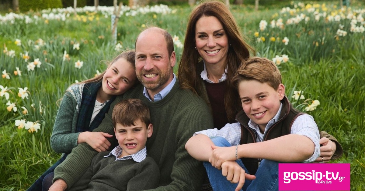 Στο κάδρο, ο πρίγκιπας και η πριγκίπισσα της Ουαλίας ποζάρουν καθισμένοι στο γρασίδι, ανάμεσα σε ανθισμένους νάρκισσους, αποπνέοντας οικογενειακή θαλπωρή. Η Σάρλοτ ακουμπά τρυφερά στον ώμο του πατέρα της, κρατώντας το μπράτσο του, ενώ ο μικρός Λούις, χαλαρός και γελαστός, γέρνει προς τα πίσω ανάμεσα στα πόδια του Γουίλιαμ. Η Κέιτ αγκαλιάζει από πίσω τον πρωτότοκο Τζορτζ και τον σύζυγό της, ολοκληρώνοντας το ζεστό οικογενειακό στιγμιότυπο.
