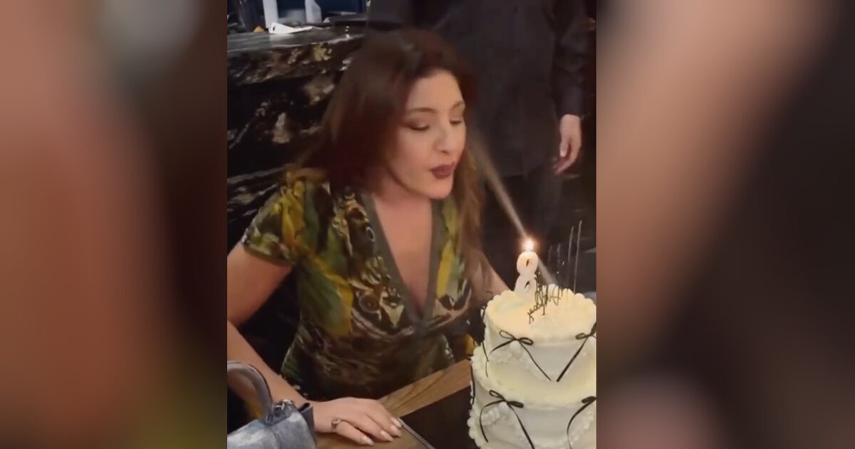 Αφού οι δικοί της άνθρωποι της τραγούδησαν το happy birthday, στη συνέχεια έκανε ευχή και έσβησε το κεράκι.