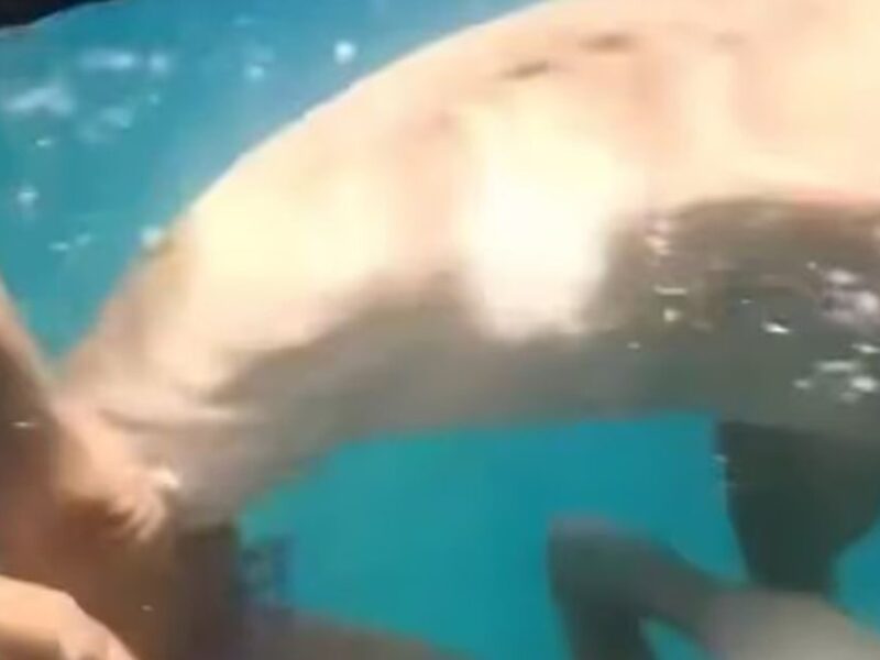 Το τρομακτικό βίντεο δείχνει αρκετούς καρχαρίες να κολυμπούν γύρω από την 36χρονη Tayane Dalazen – την ώρα που έκανε κατάδυση στη Βραζιλία – πριν ένας από αυτούς ορμήσει προς το μέρος της και την αρπάξει από το πόδι.