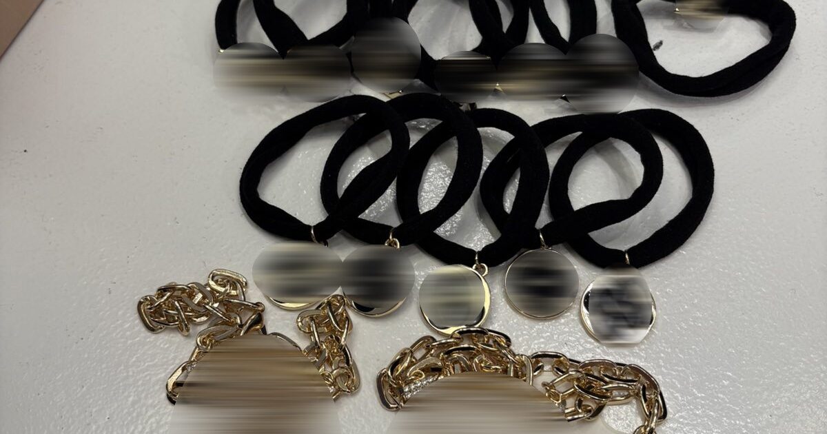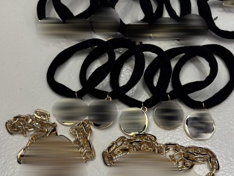 Μετά από έρευνα στο εν λόγω κατάστημα, βρέθηκαν και κατασχέθηκαν διάφορα απομιμητικά προϊόντα όπως λαστιχάκια, κολιέ και διακοσμητικά κοσμήματα.