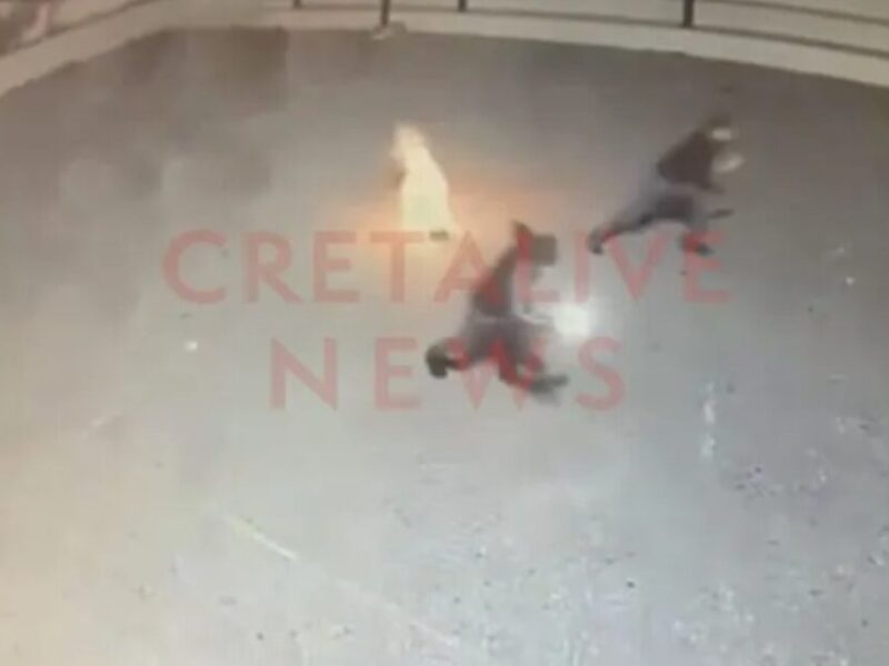 Βίντεο-ντοκουμέντο που δημοσιεύει το Cretalive καταγράφει τη στιγμή της έκρηξης του αυτοσχέδιου εκρηκτικού-εμπρηστικού μηχανισμού στην αυλή του σχολείου.
