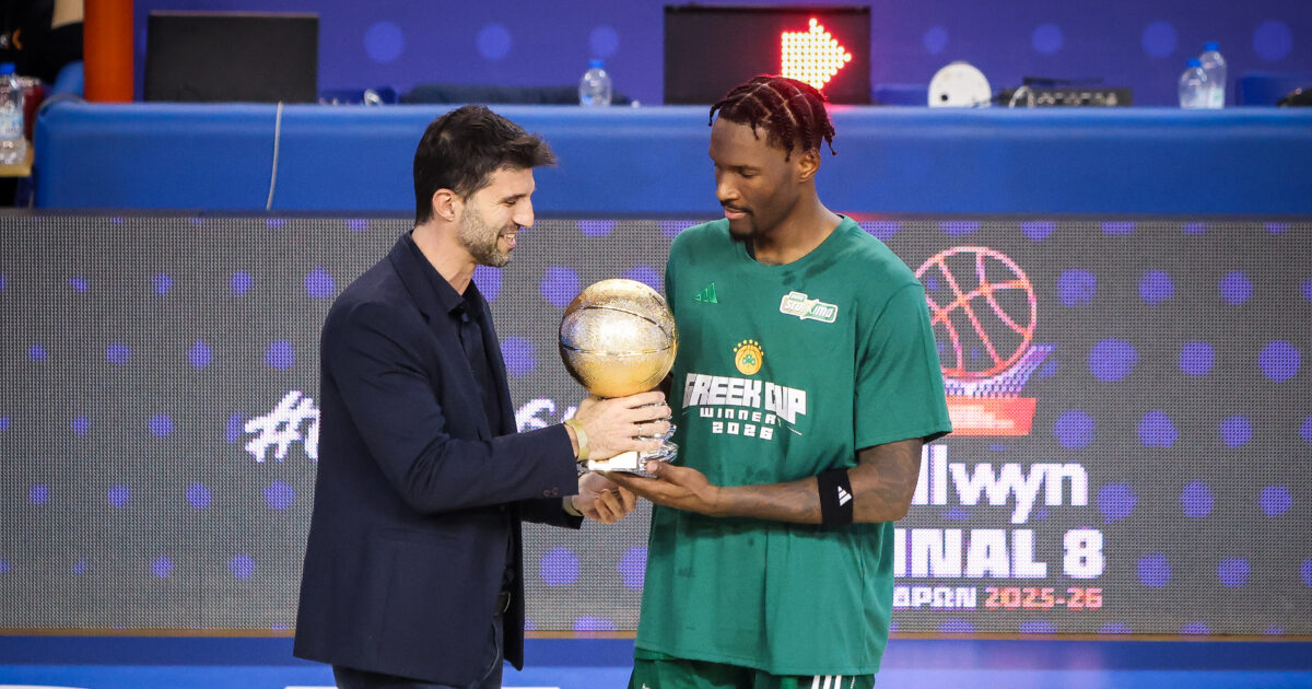 Ο Νάιτζελ Χέιζ-Ντέιβις παραλαμβάνει το βραβείο του MVP/ EUROKINISSI