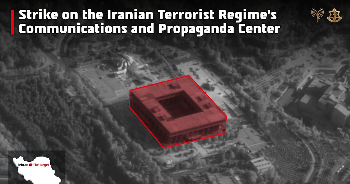Ο στρατός του Ισραήλ ανακοίνωσε ένα λεπτό πριν από τα μεσάνυχτα ότι «έπληξε και κατέστρεψε» την έδρα της δημόσιας ραδιοφωνίας και τηλεόρασης (IRIB) του Ιράν στο βόρειο τμήμα της Τεχεράνης.