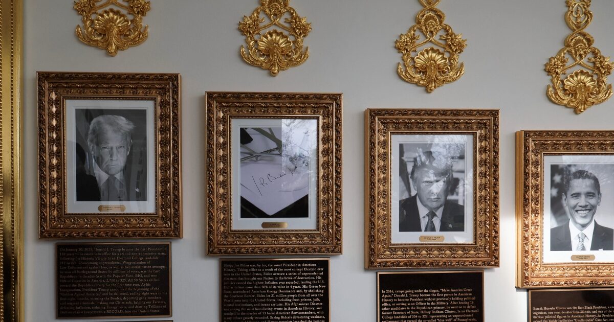 Όχι και τόσο τιμητικές είναι οι πλακέτες που φέρεται να διάλεξε ο ίδιος ο Ντόναλντ Τραμπ, για να συνοδεύουν τις φωτογραφίες των αμερικανών προέδρων στο περιστύλιο του Λευκού Οίκου. Στις περιπτώσεις πολιτικών αντιπάλων του, οι αναφορές εστιάζουν στα αρνητικά της θητείας τους και ασκούν κριτική σε βασικές αποφάσεις και πολιτικές που εφάρμοσαν.