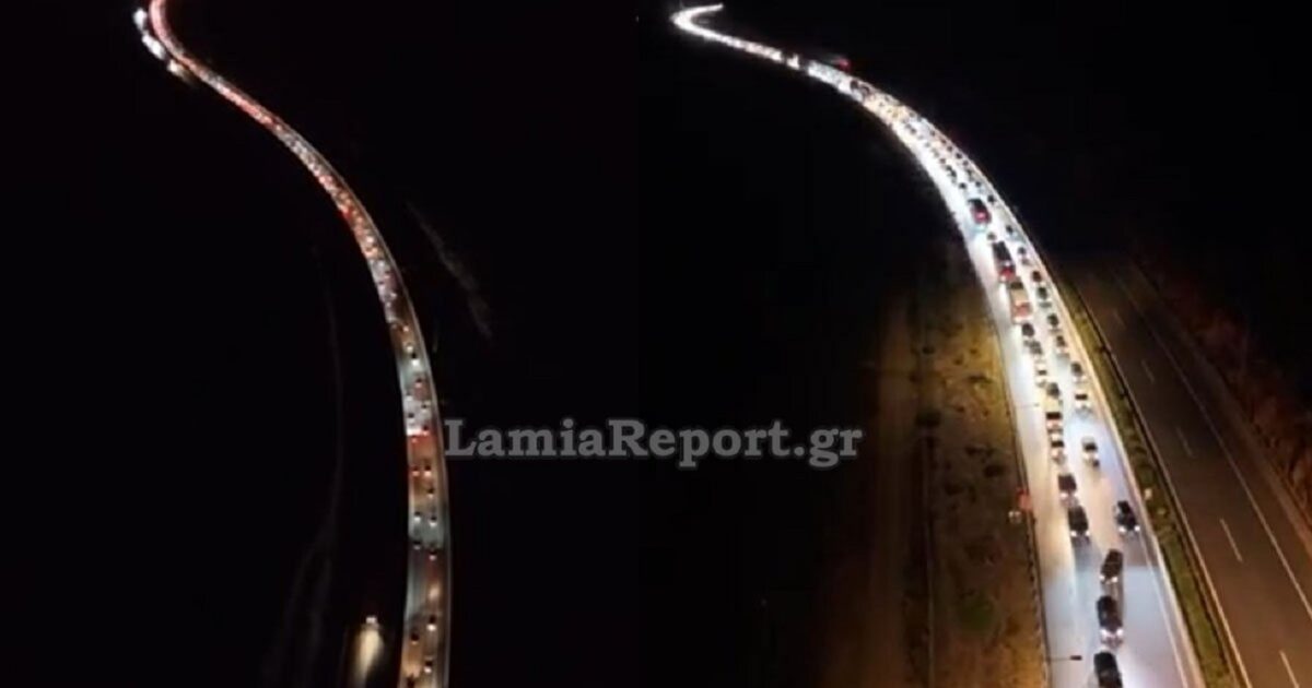 Σύμφωνα με το LamiaReport η καρδιά του προβλήματος βρίσκεται στο ύψος της γέφυρας του Ακραιφνίου, καθώς εκεί, η κίνηση των οχημάτων γίνεται μόνο από μία λωρίδα κυκλοφορίας. Κάπως έτσι, δημιουργήθηκε η ουρά χιλιομέτρων που καταγράφεται στις εικόνες.