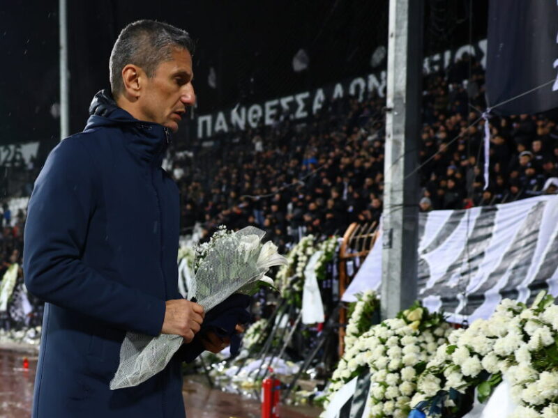 Ο Λουτσέσκου αφήνει λουλούδια στην Τούμπα (ΡΑΦΑΗΛ ΓΕΩΡΓΙΑΔΗΣ / EUROKINISSI)