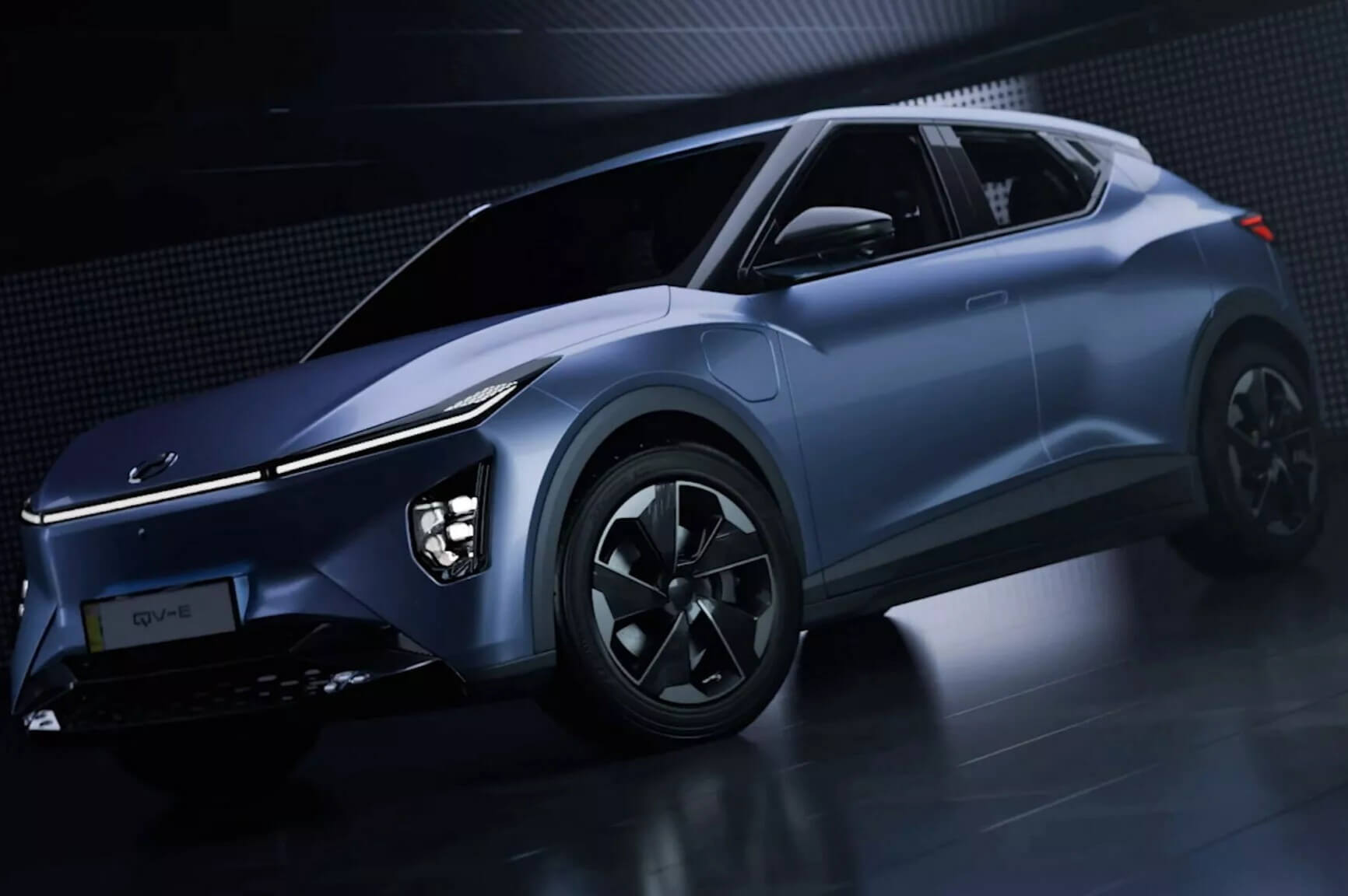 Με μήκος 4.170 mm και μεταξόνιο 2.680 mm, το QV-E συνδυάζει συμπαγείς διαστάσεις με σπορ εμφάνιση. Το μπροστινό μέρος θυμίζει κάτι από Lexus LBX, ενώ τα τονισμένα πίσω φτερά και οι κρυφές πίσω χειρολαβές παραπέμπουν στο Nissan Juke.