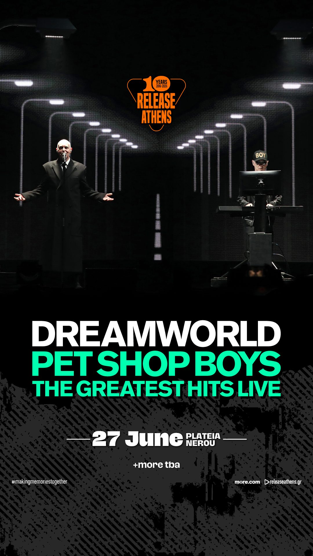 Το Release Athens 2026 υποδέχεται τους Pet Shop Boys το Σάββατο 27 Ιουνίου, στην Πλατεία Νερού. Τέσσερα χρόνια μετά τον θρίαμβο του 2022 — ένα από τα καλύτερα shows που έχουμε ζήσει στα 10 χρόνια του φεστιβάλ — οι Neil Tennant και Chris Lowe επιστρέφουν με μια ακόμη μεγαλύτερη παραγωγή, έτοιμοι να μας χαρίσουν ξανά μια από τις πιο αξέχαστες βραδιές του φετινού καλοκαιριού – και όχι μόνο.