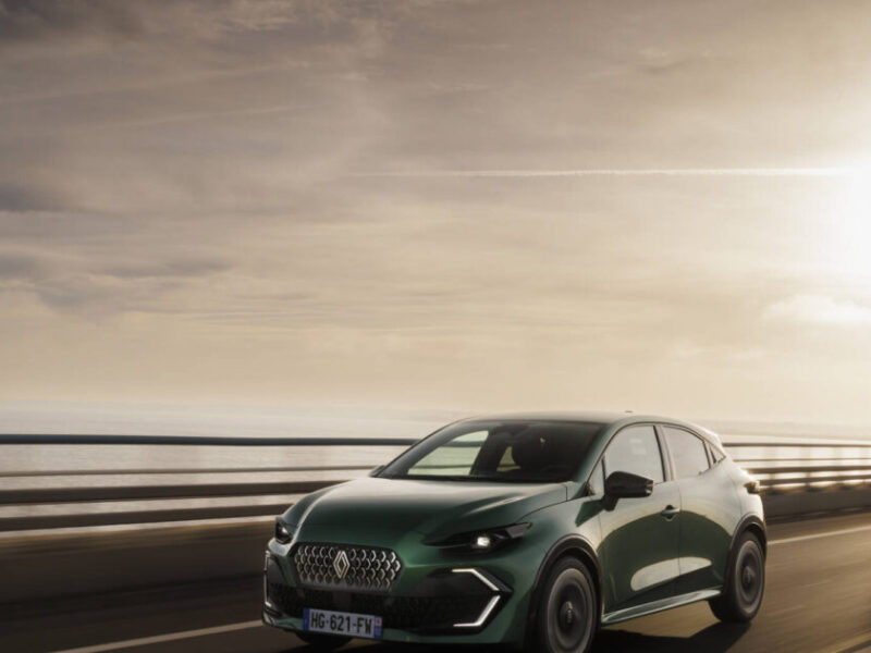 Το νέο Clio παραπέμπει σχεδιαστικά σε compact coupe, ξεχωρίζει η νέα φωτιστική υπογραφή, με τα μεγάλα φώτα ημέρας σε μαύρο πλαίσιο, οι κρυφές χειρολαβές των πίσω θυρών, και το περίγραμμα των παραθύρων που στενεύει στην πίσω γωνία.