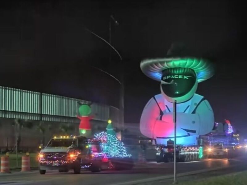 Μία ιδιαίτερη χριστουγεννιάτικη παρέλαση έγινε από την SpaceX, που συνηθίζει να κερδίζει τις εντυπώσεις με τη βάση στο Starbase του Τέξας να μετατρέπεται από διαστημικό κέντρο σε χριστουγεννιάτικο χωριό.