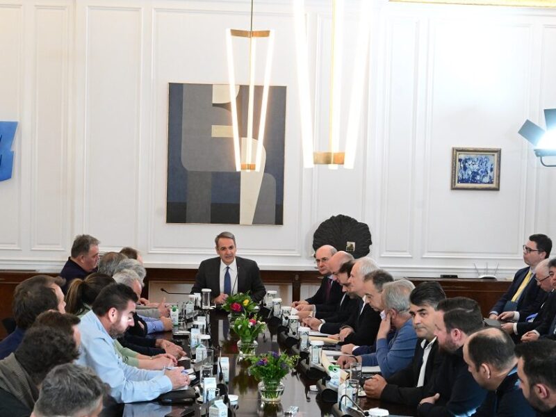 Μετά από περίπου 50 ημέρες κινητοποιήσεων, σήμερα στις 13:00, το κατώφλι του πρωθυπουργικού γραφείου περνούν και οι «σκληροί» αγρότες των μπλόκων, με το Μέγαρο Μαξίμου να προσδοκά η συνάντηση με τον Κυριάκο Μητσοτάκη να οδηγήσει στην απομάκρυνση των τρακτέρ από τις εθνικές οδούς.