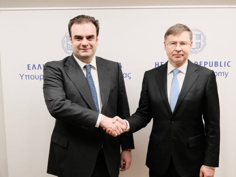 Με τον αρμόδιο επίτροπο της ΕΕ για θέματα οικονομίας, παραγωγικότητας, εφαρμογής και απλούστευσης, Βάλντις Ντομπρόβσκις, συναντήθηκαν σήμερα (23.4.2026) ο υπουργός Εθνικής Οικονομίας και Οικονομικών Κυριάκος Πιερρακάκης και η πολιτική ηγεσία του υπουργείου.