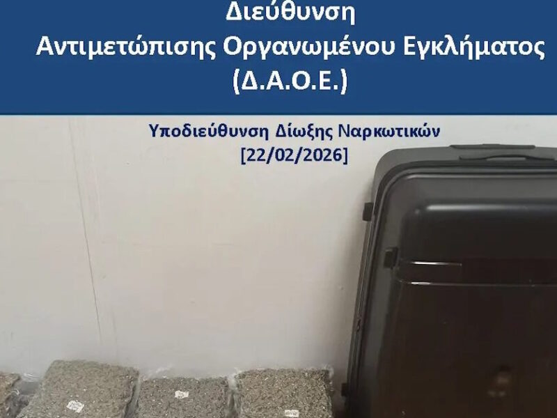 Οι αστυνομικοί συνέλαβαν χθες (22/2/ 2026) το μεσημέρι στο αεροδρόμιο «Ελευθέριος Βενιζέλος», έναν 39χρονο αλλοδαπό, μέλος διεθνικής εγκληματικής ομάδας, που δραστηριοποιούνταν στην εισαγωγή ναρκωτικών στην Ελλάδα, μέσω της αεροπορικής οδού.