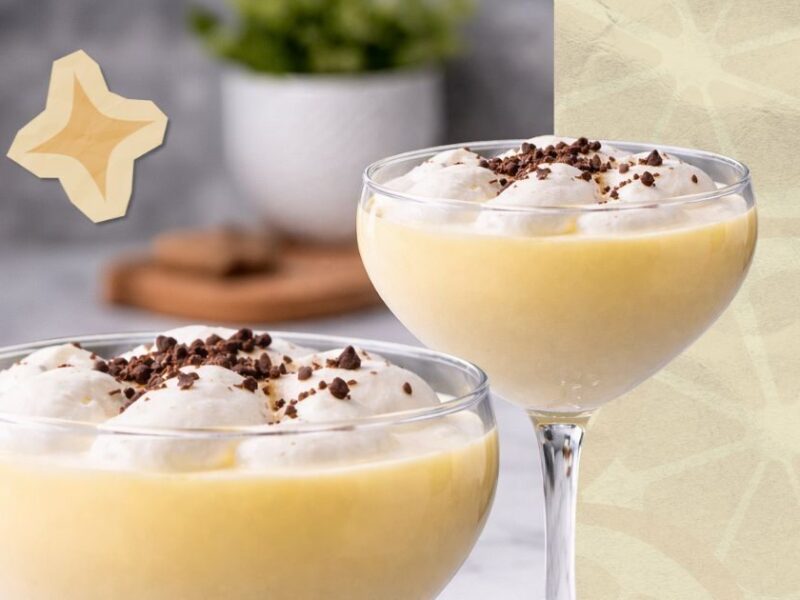 - Προσθέτουμε τον χυμό λεμονιού σε 2–3 δόσεις ανακατεύοντας καλά. Μοιράζουμε σε ποτηράκια.