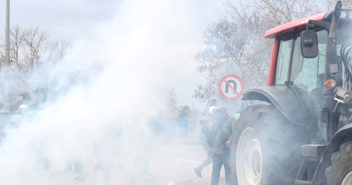 Τα ΜΑΤ έριξαν δακρυγόνα για να απωθήσουν τους αγρότες που προσπαθούσαν να κατευθυνθούν προς το αεροδρόμιο «Μακεδονία» / ΒΑΣΙΛΗΣ ΒΕΡΒΕΡΙΔΗΣ/ΜΟΤΙΟΝΤΕΑΜ